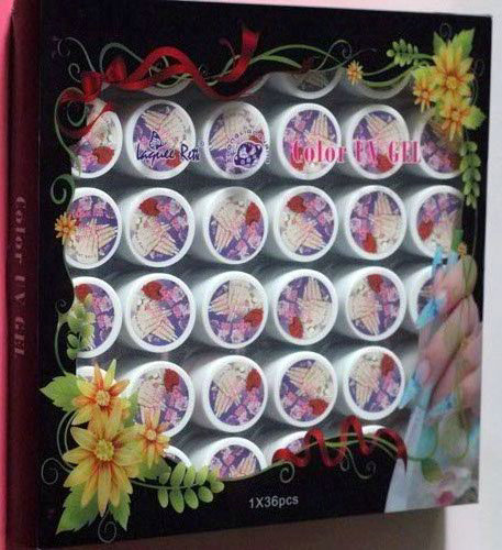 - 36 pcs Mixed Pure/Solid and Glitter Colors UV Builder Gel